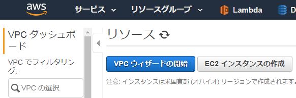 「VPCウィザードの作成」をクリックします。