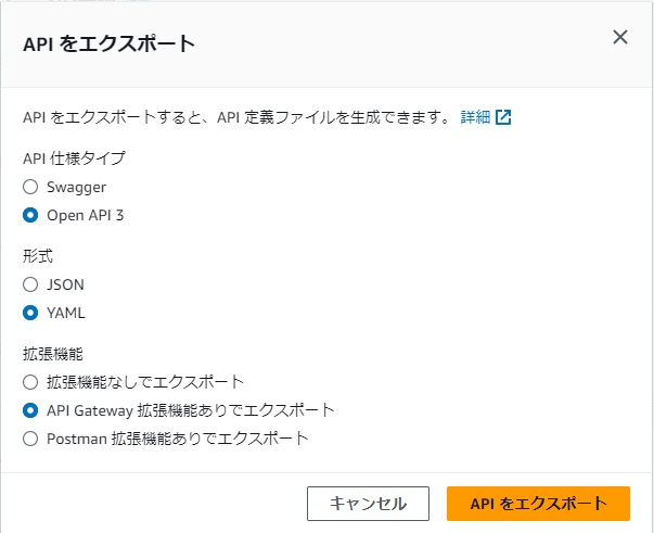 予めマネジメントコンソールで作成しているREST APIのOAIをエクスポートして、DefinitionUriに指定する方法です。インポートするイメージになります。