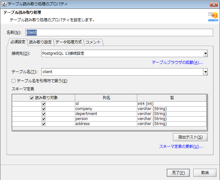 「テーブル読み取り処理」の設定です。