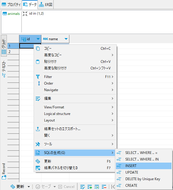 データからinsert文やdelete文を自動生成する機能があります。