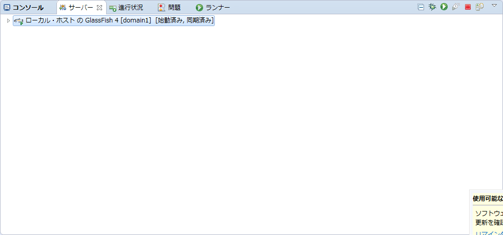 サーバービューより、Glassfishを起動します。