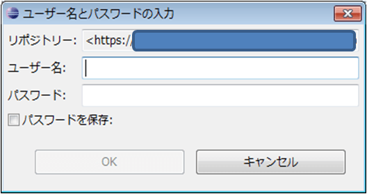 「パスワードを保存」にチェックを入れて、SVNユーザ、SVNパスワードを入力して、ユーザを変更しなおします。これでEclipseでSVNユーザを記憶しなおすことができます。
