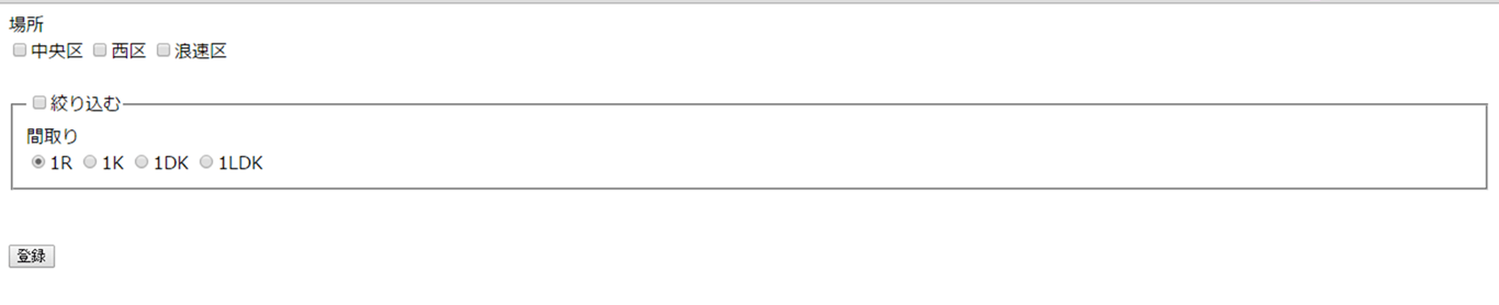 jQueryでチェックボックスにチェックを入れて検索条件を有効にする