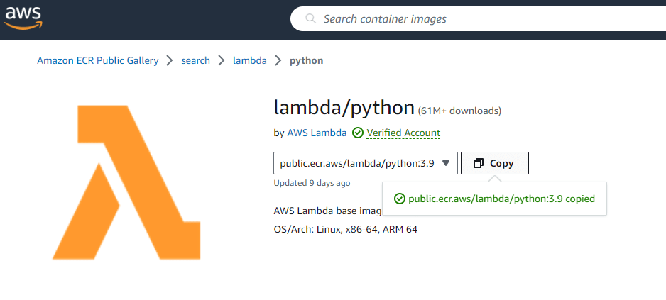 下記URLからPythonのAWS Lambdaベースイメージを利用します。