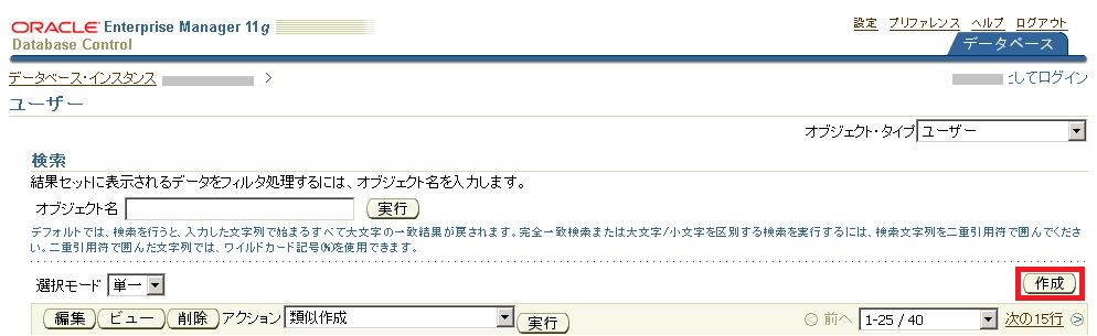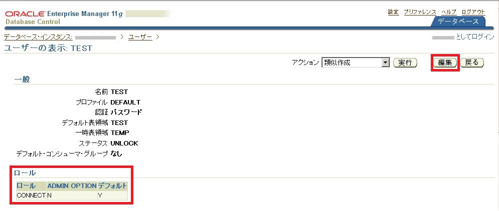 デフォルト表領域は、ORACLE Enterprise Managerから表領域を作成するで作成した表領域を指定しています。