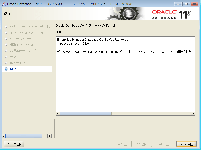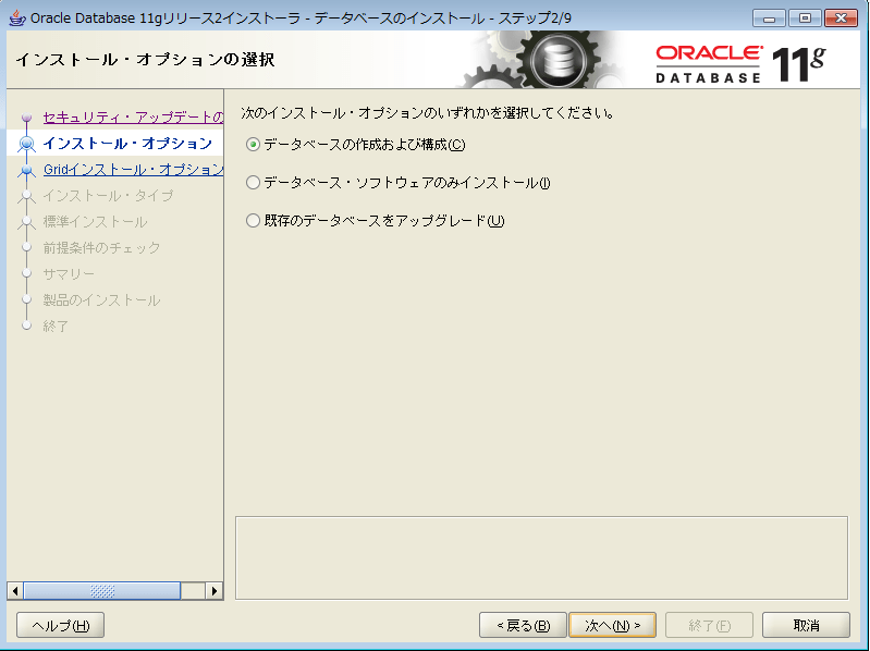Oracle11gをWindowsにインストールする
