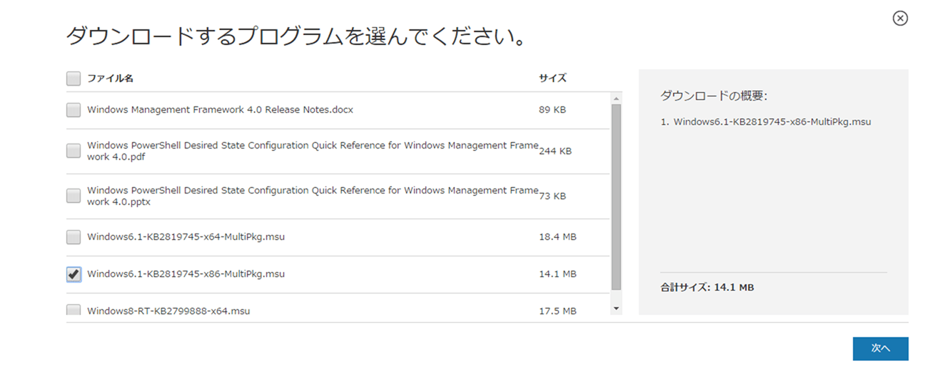次に、PowerShell4.0がバンドルされているWindows Management Framework 4.0をhttps://www.microsoft.com/ja-jp/download/details.aspx?id=40855よりダウンロードします。
