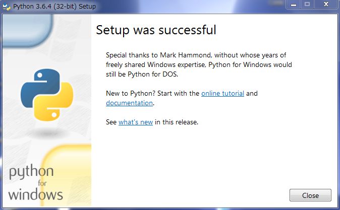 「Close」をクリックします。