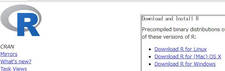 R言語のインストール方法です。インストールサイトにアクセスして、OSに応じたインストーラをダウンロードします。