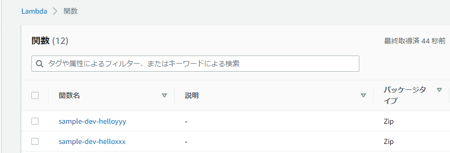 $ serverless deploy Running "serverless" from node_modules Deploying sample to stage dev (ap-northeast-1) ✔ Service deployed to stack sample-dev (135s) functions: helloxxx: sample-dev-helloxxx (1.3 MB) helloyyy: sample-dev-helloyyy (1.3 MB) 1 deprecation found: run 'serverless doctor' for more details Want to ditch CloudWatch? Try our new console: run "serverless --console"
