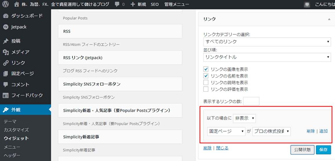 WordPressで固定ページのみリンクウィジェットを表示したくない